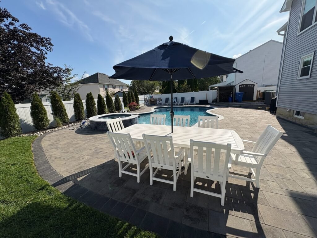 Enhance your yard’s functionality and style with expertly designed hardscaping, including patios, walkways, and decorative stonework. We craft beautiful, durable surfaces that integrate seamlessly with your pool and landscaping. Using high-quality pavers, natural stone, or decorative concrete, we create inviting outdoor living areas perfect for dining, entertaining, or simply relaxing. Our custom hardscape designs bring structure and character to your backyard, while ensuring every element stands up to New Jersey’s changing seasons for years of worry-free enjoyment.